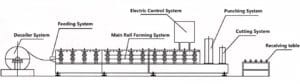 Equipped with a decoiler, leveling system, roll forming unit, hydraulic cutting section, run-out table, and PLC intelligent control, the Door Frame Making Machine ensures smooth, automated production with minimal manual intervention. Its integrated PLC system precisely monitors each stage of operation, improving stability and reducing production errors.