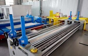 A standard configuration includes the main roll forming unit, pinch roller system, and dual product collection tables, offering a fully automated and efficient production workflow.