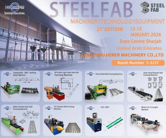 Cangzhou Hener Machinery Co., Ltd, a professional roll forming machine supplier and roll forming machine factory, will participate in STEELFAB 2026 – Machinery, Technology & Equipment (21st Edition), held from January 12 to 15, 2026 at Expo Centre Sharjah, United Arab Emirates.